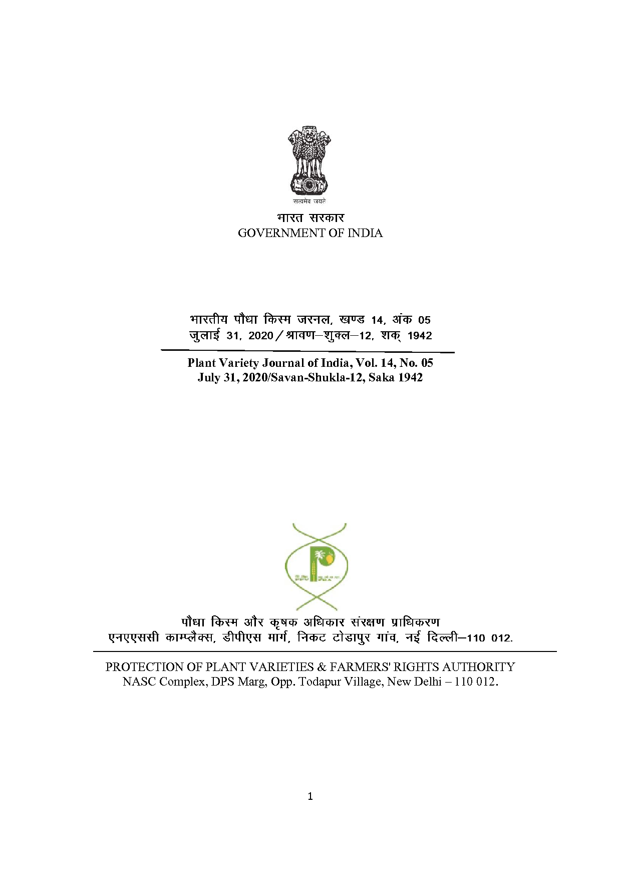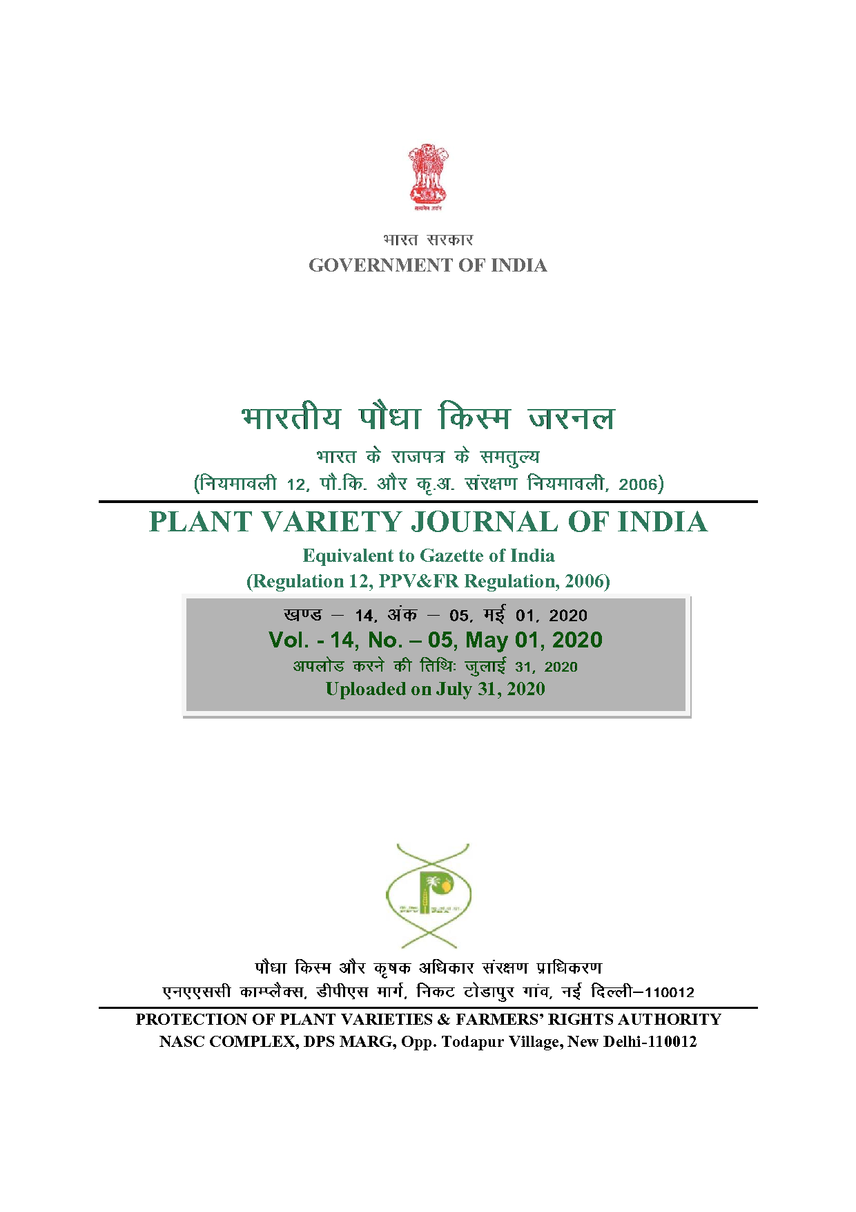 Protection of Plant Varieties and Farmers' Rights Authority, Ministry of Agriculture and Farmers Welfare, Government of India Logo