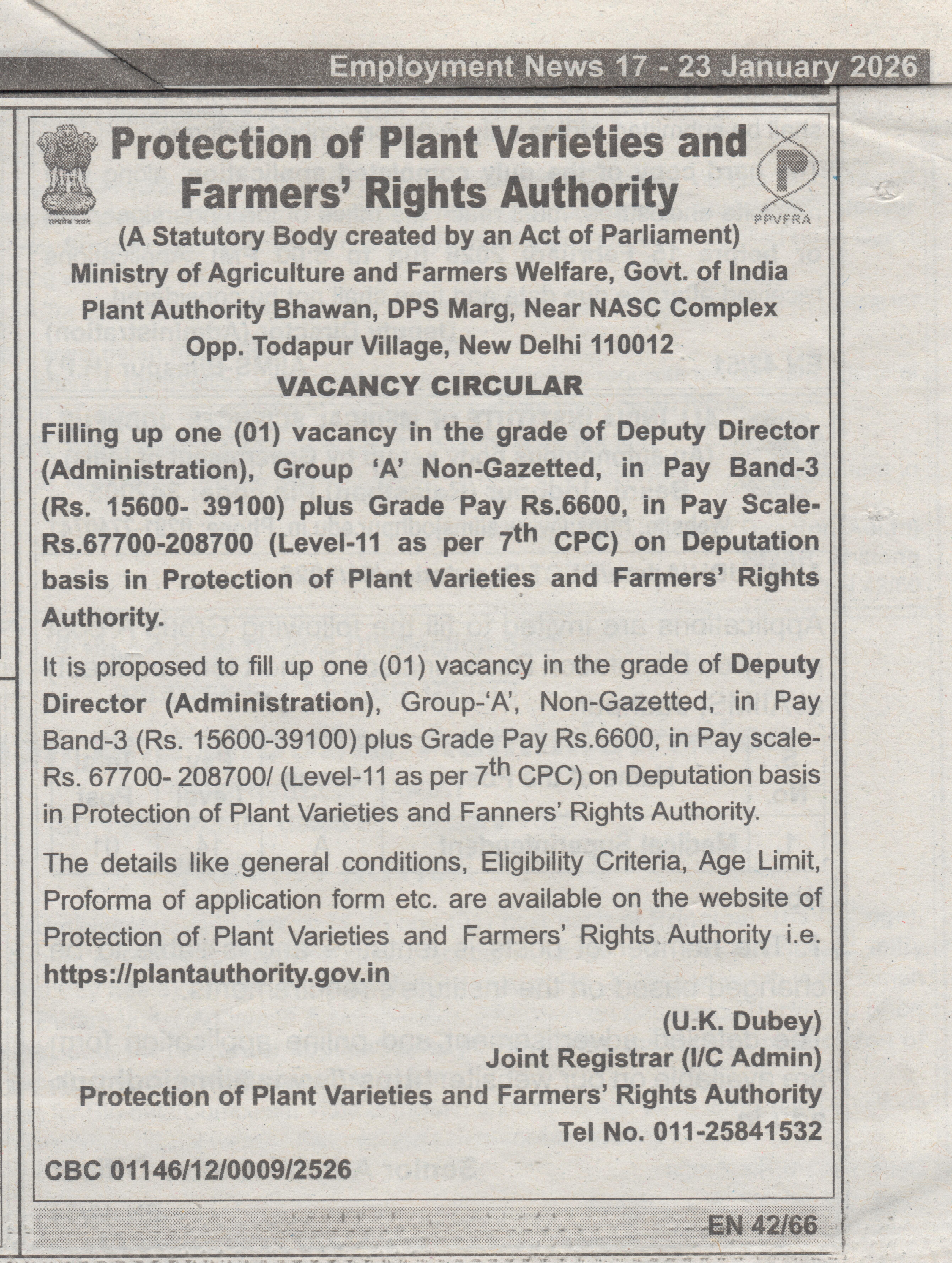 | View / Download | Employment news advertisement - File size: 5.69 MB |